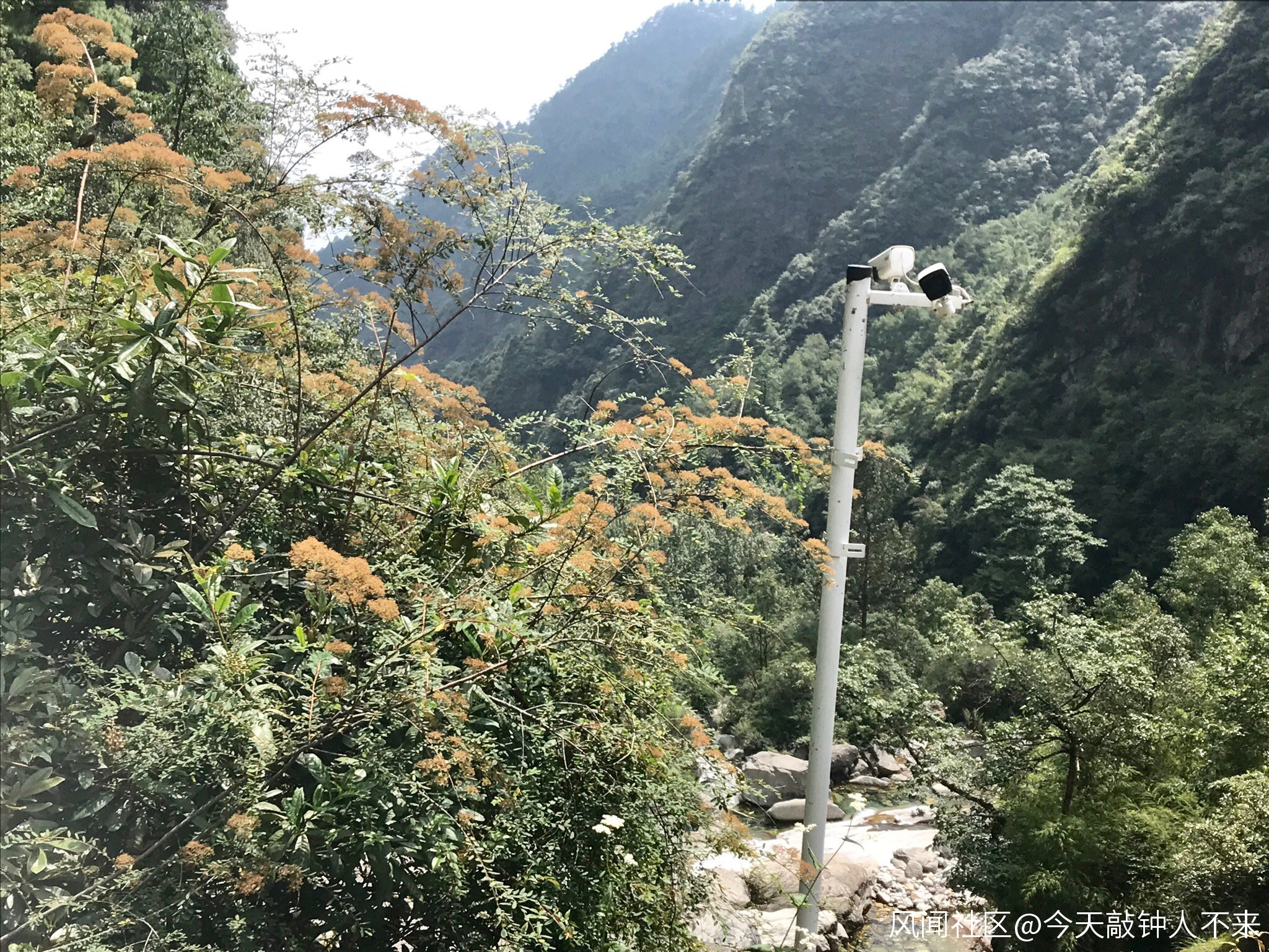 但通過他的配圖,我們卻是可以看到,監控安裝在溪澗之畔。監控下方溪流湍急、岩石裸露,地形極為崎嶇不平。