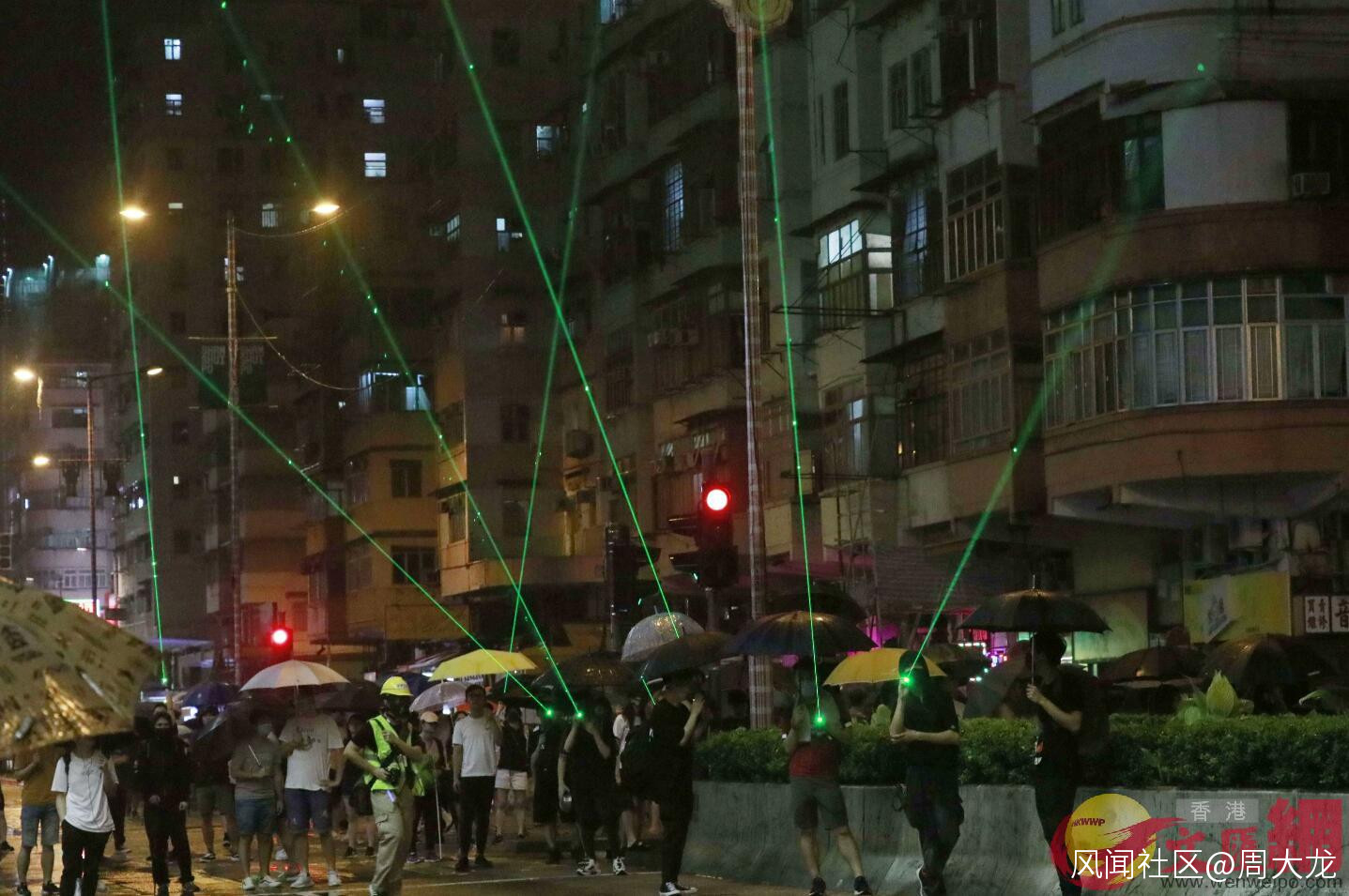 入夜後黑衣人在深水埗用激光筆擾民 圖片來源:香港文匯報