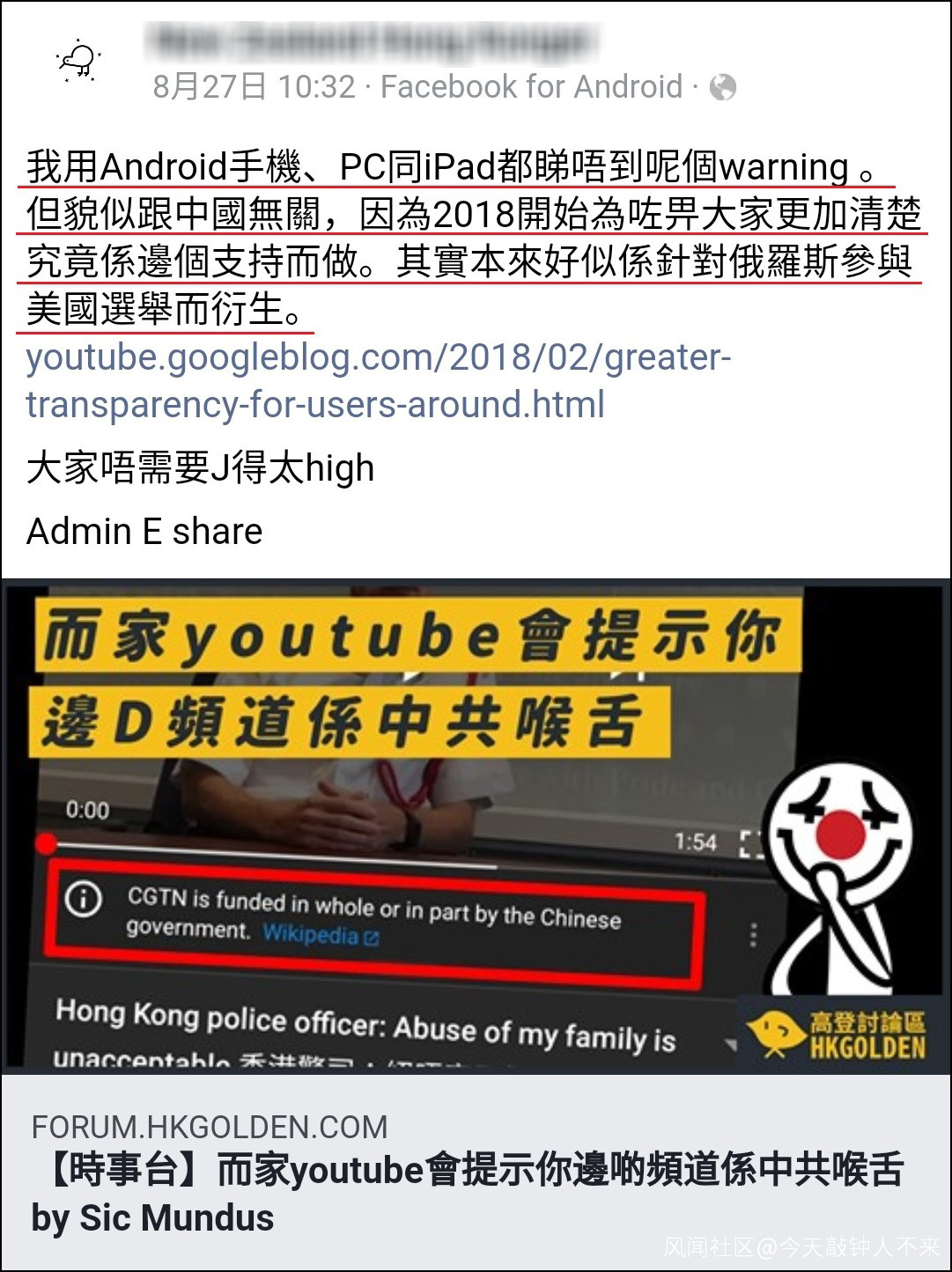 發文的香港網民稱,自己在youtube安卓手機、PC和平板幾個端扣上都沒有看到相關標記,而且這一變化似乎也跟中國無關。