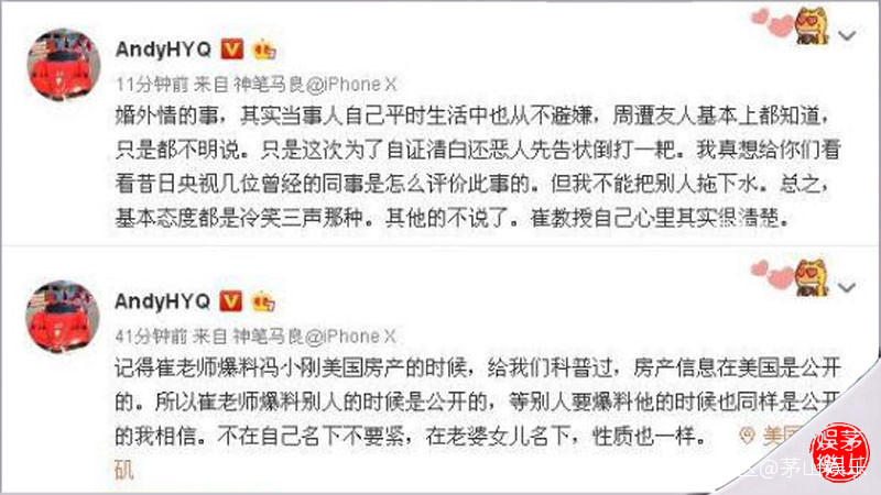 資料圖到了2018年5月崔永元因《手機2》,憑一己手撕馮小剛、劉震雲、范冰冰等一眾明星大腕時,黃毅清又跳出來為馮小剛助陣,“碰瓷”崔永元,“捏造了”很多崔永元的“黑料”,很多“黑料”被他用各種“證據”,説的是有鼻子有眼的,當時網絡上還有不少跟風罵崔永元的與他結成了同夥。靠着“碰瓷”崔永元,黃毅清開始成為百萬級粉絲大V,並很快成為知名娛樂博主。