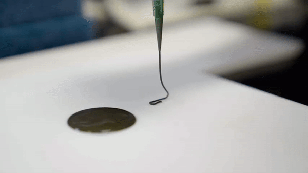 不同於熔融的熱塑性聚合物的常規擠壓,3D打印不需要通過加熱來溶解、流化油墨。磁化油墨的剪切稀化(假塑性)表現使得複合油墨在加壓後能輕鬆擠出,並且屈服應力的存在能使油墨保持形狀,形成一條線,而不是變成一灘糊糊。