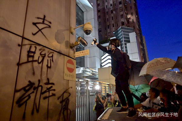 7月21日,暴徒圍堵中聯辦,污損國徽,並噴塗“支聯辦”等侮辱中國人的塗鴉,直接挑釁大陸。此時形勢開始發生變化,在中聯辦的聲明中,不再提及維護香港的繁榮穩定,而是強調“堅決維護“一國兩制”,維護法治”,“採取一切必要措施,確保中央駐港機構安全,維護香港法治,懲治犯罪分子。”