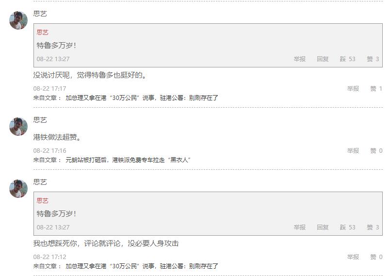 在此之後,該ID參與了新聞 施壓港警後,美政客們逼特朗普表態 的評論。