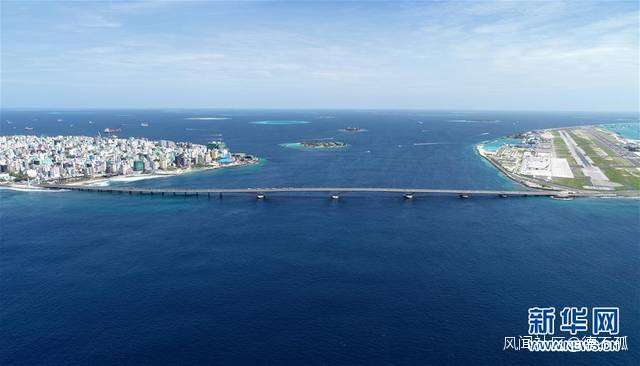 這是2019年8月30日在馬爾代夫航拍的連接首都馬累和機場島的中馬友誼大橋。 新華社發王明亮攝