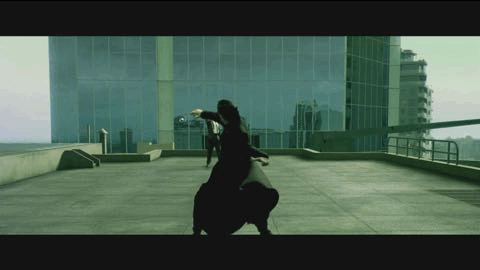 崔妮蒂每一部黑客帝國裏必有的大鵬展翅也很帥,為什麼沒有"子彈時間"出名呢?