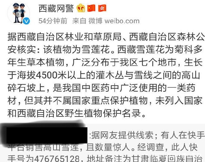 也正是因為它們是雪兔子,而非真正的雪蓮,並沒有正式列入保護名錄。野食小哥和這個大量售賣的人並沒有受到任何法律的懲戒。西藏網警也發文表示西藏雪蓮花並不屬於我國重點保護植物,未列入國家和西藏自治區野生植物保護名錄。也就預示着,西藏警方並不會就此事進行司法層面的干涉。