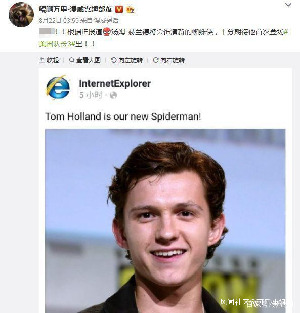 而IE瀏覽器在社交網站更新的消息卻是:“恭喜荷蘭弟成為我們的新任蜘蛛俠。”眾所周知,這是2016年的事情。巧合的是,IE瀏覽器就是在這一年被微軟正式終止了服務支持。