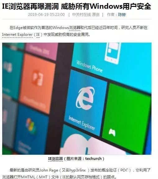 甚至直到今年,IE瀏覽器都還在曝出有嚴重漏洞的消息/截圖自中關村在線