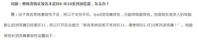 更奇葩的是,有的報名系統只能用IE10以前的瀏覽器操作,連IE11都不行/截圖自中公教師網