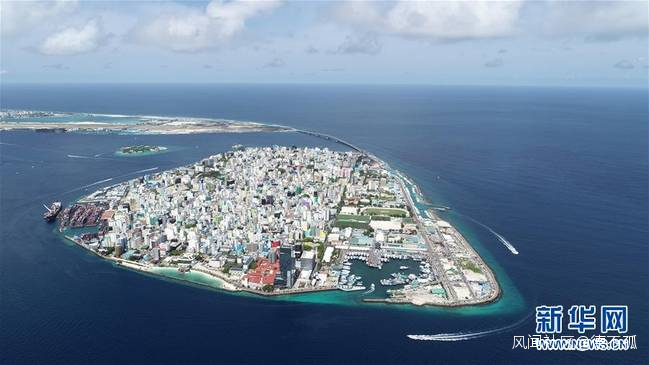 這是9月1日拍攝的馬爾代夫首都馬累全景,遠處為中馬友誼大橋(無人機拍攝)