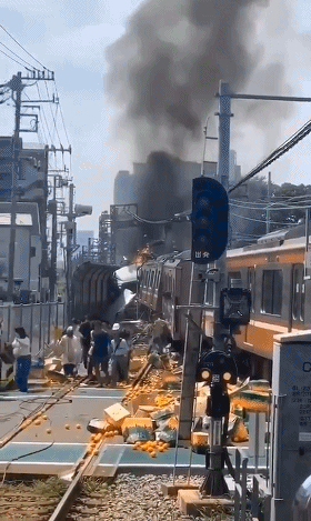 日本發生重大貨車撞電車事件!貨車司機當場死亡!34人受傷..._風聞