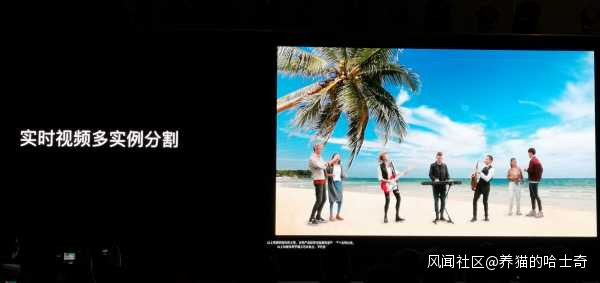 AI有用這是毋庸置疑的,語音識別,圖像識別,拍照甚至系統內部優化等很多方面都會用到AI。通常我們的AI都是在雲端進行訓練,然後在手機等終端上執行訓練的模型,這樣會帶來一個問題,執行模型其實不用太強的性能,性能過強還耗電。華為借鑑了大小核的設計在AI芯片上採用了超強大核+微核的設計,微核可以用於人臉識別等應用降低功耗達到省電的目的。那是不是終端側AI性能強沒意義呢?也不是,如果終端側的AI性能強到一定程度就可以在端側實現一些AI應用了,比如演示的實時視頻多實例分割,印象太深刻了,實時扣圖太強了。