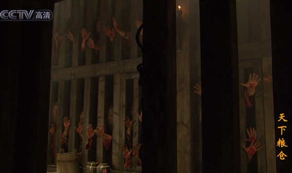 《天下糧倉》第三集,當孫嘉淦去牢裏給雍正朝受難的大臣們宣讀平反詔書時,卻發現有的人已經死了,而活着的那些罪臣們,一個個手掌上用自己的鮮血寫下了兩個字: