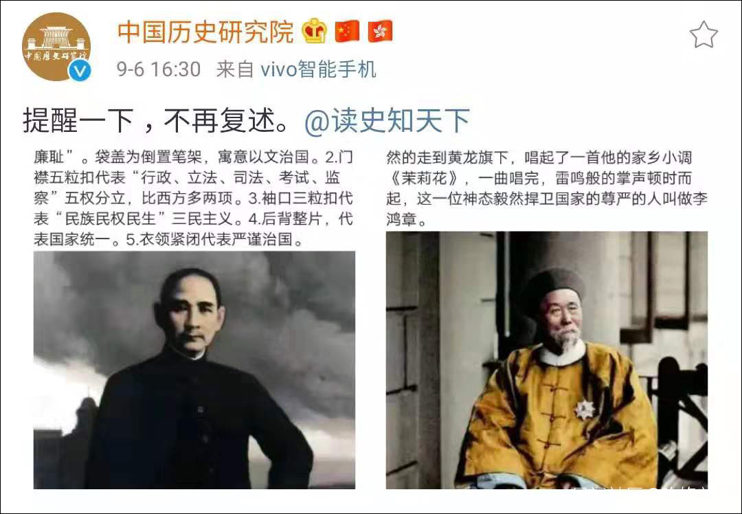 例如,@左右歷史 在8月31日發了一篇微博企圖美化曾任民國總理的王士珍。