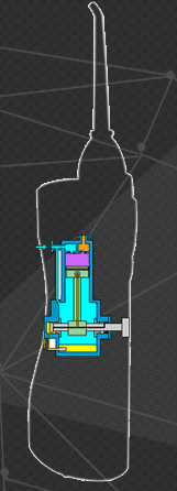 用活塞泵的便攜式衝牙器,各家的設計都差不多,需要注意的是噴頭自己的設計,有沒有泄水槽?能不能降低頂着牙齦噴的時候內部管線壓力大,漏水的問題?