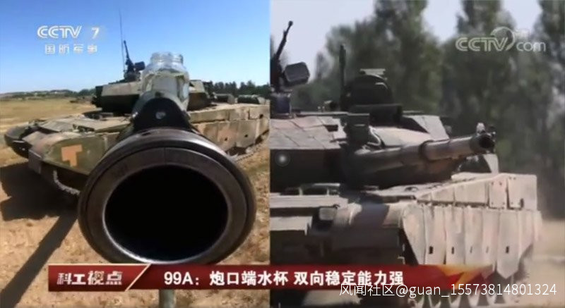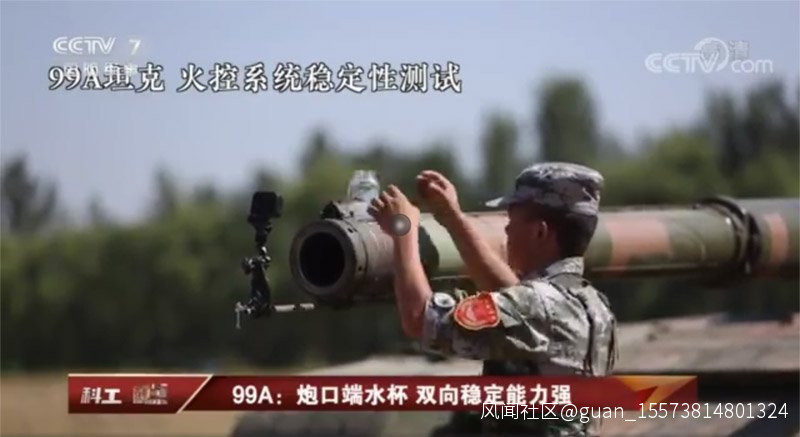 它的炮口上擺了一杯水,任憑坦克各種移動,杯子裏的水卻不灑一滴,這證實了99A坦克運動中精準命中敵人目標的能力!