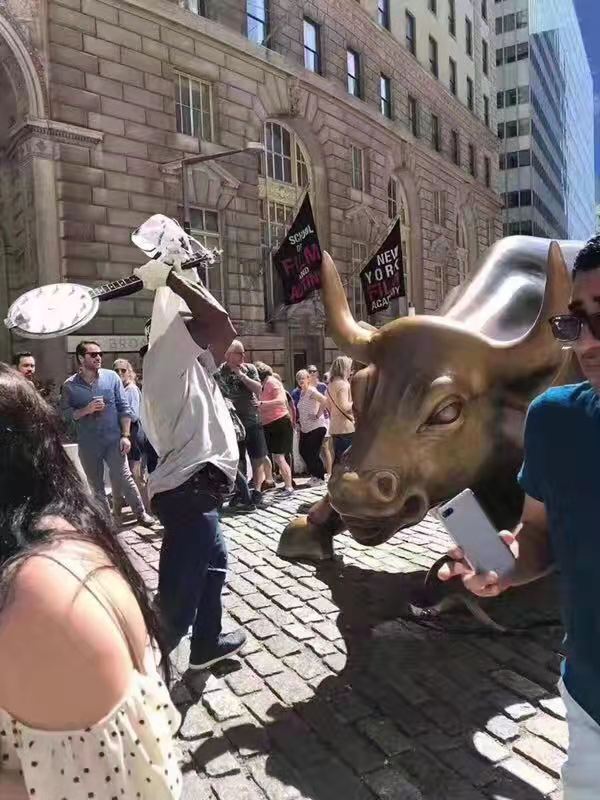 突發!紐約著名地標“華爾街銅牛”被得州男子破壞,留下一個洞_風聞