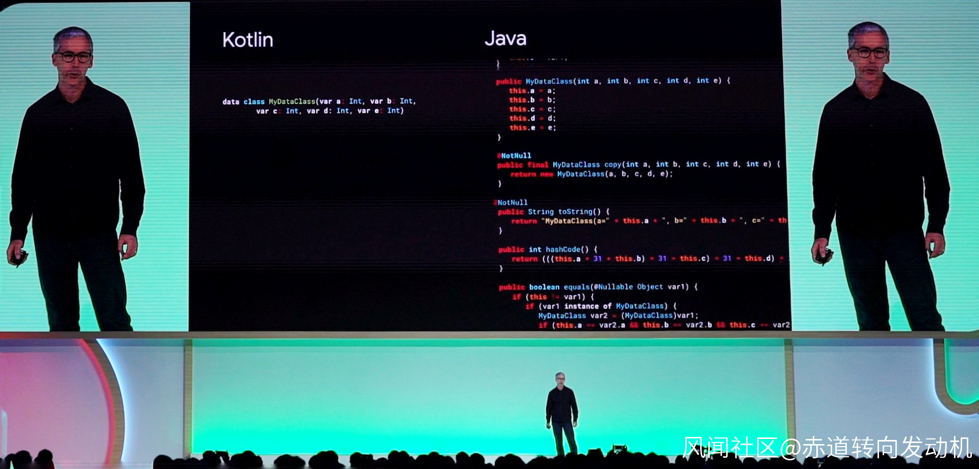 現在,Kotlin已經是一躍成為全球範圍內增長最快的語言,超過50%的開發者都在使用。Haase在現場展示,Kotlin的代碼量比傳統的Java要少很多。