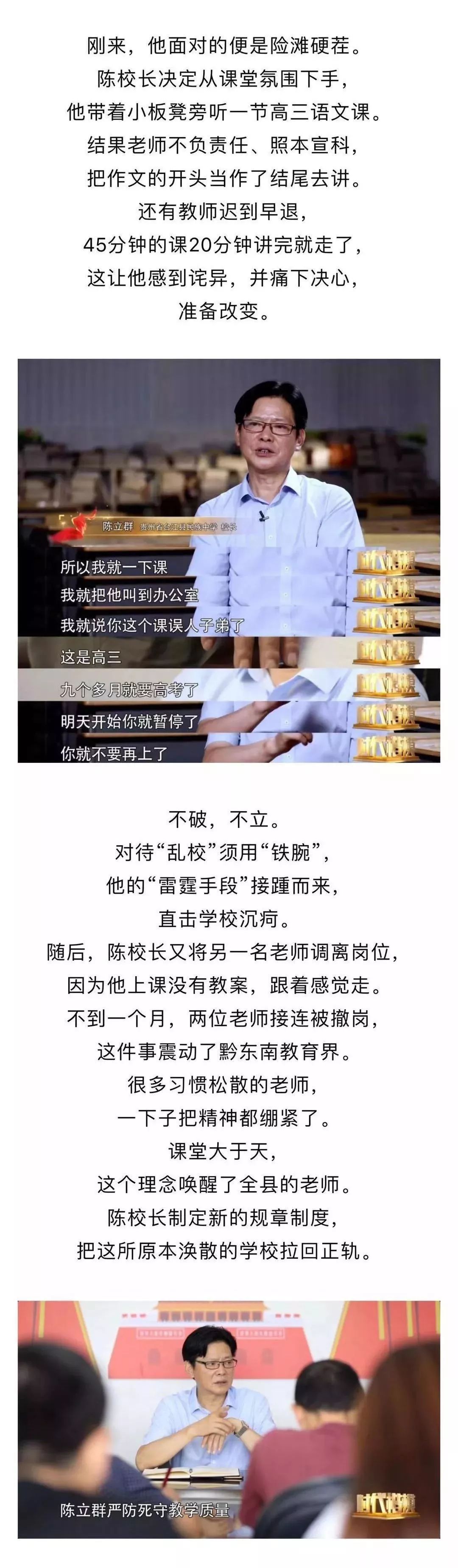 邀請説出口,龍峯自己都覺得不切實際,況且就算陳立羣答應了,台江這座偏遠且貧困的縣城,又能拿什麼招待好這位名校長呢?然而陳校長沒開條件,“解決吃住就行”卸任浙江省的國家重點高中校長,來到距離杭州1400公里外的貴州山區,陳立羣開啓了他分文不取的支教生涯。名校長做“傻決定”↓↓↓