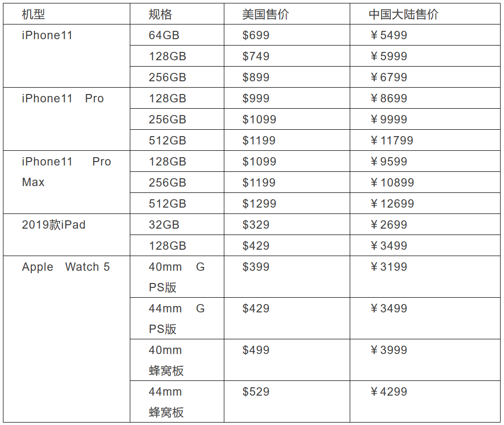 大家最關心的定價,小編已經從官方網站上為大家整理出來了,請土豪們各取所需。值得一提的是,iPhone11本次出現的“真香”售價,起步價格直接比上一代iPhone XR低了1000元,是不是“浴霸”看起來也沒那麼醜了呢?