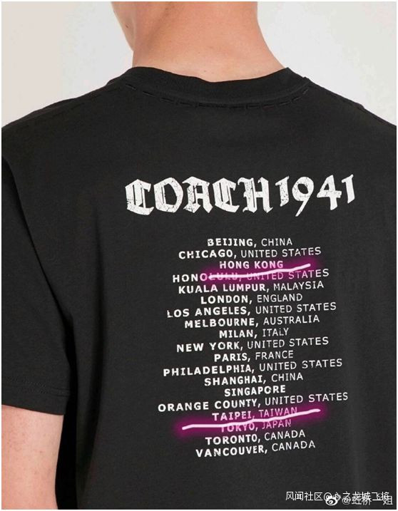 蔻馳(COACH)被網友發現設計T恤及官網搜索欄不尊重中國主權,將香港、澳門和台灣列為國家。
