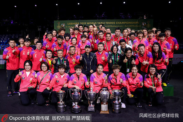 中國乒乓球隊在2019年布達佩斯世錦賽包攬五項冠軍。