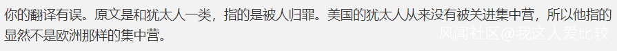 不過我老覺得他這種説法是有小心思的。為什麼他不説黑人,穆斯林,同是亞裔真進過集中營的日本人,卻而要對一堆亞裔聽眾提唯一既進過集中營又被大量屠殺的猶太人,況且猶太人現在在美國過得很慘嗎?