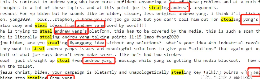視頻下的評論區各種諷刺拜登剽竊楊。