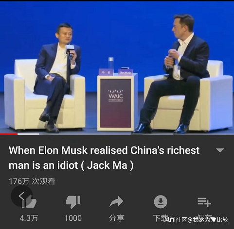 某雙馬對談視頻,標題寫到:當馬斯克發現,中國最有錢的人是個笨蛋。