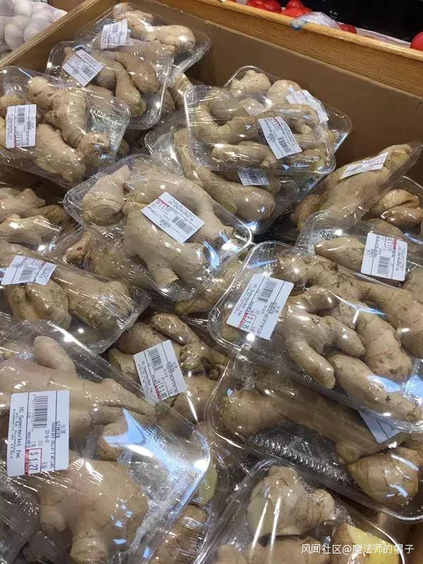 美國超市常把姜、蒜擺在一起出售。9月初,各大超市的生薑價格基本上都在1.99美元一磅(約合0.9斤),而大蒜則是按頭賣,每十頭售價大約在3.5美元左右。