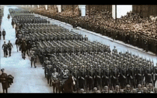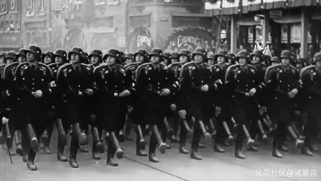▲二戰前在閲兵式上接受檢閲的德軍士兵方隊
