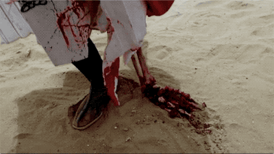 ending戲是沙漠大戰,只能拍七天,七天一過就要回去,**直到拍到第六天,我才想到甄子丹怎麼收場,**要把他腳骨手骨削掉,然後我們當天馬上去買豬骨頭,做道具,再把甄子丹真的腿綁在後面。