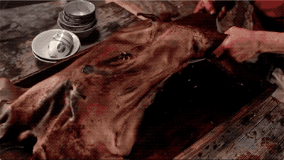 我是怎麼想到的呢?我就突然記起之前客棧裏有一場戲是廚子刁不遇剔羊骨,我就想,乾脆把這場戲連上,給它接上。