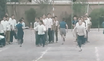 隨後,安東尼奧尼被帶到一所工人子女學校,這裏的學生目光嚴肅,邁着整齊劃一的步伐,做操、跑步。