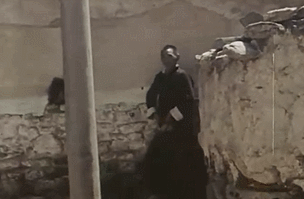 一羣站在家門口的女孩看到安東尼奧尼後,神情變得緊張起來。她們感到莫名其妙與害怕,僵硬着身體不敢動,或者乾脆跨進土屋,在大門後偷窺。