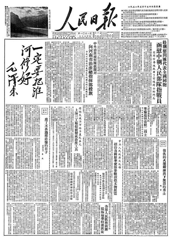 1951年5月15日,《人民日報》刊登《向河南省治淮總指揮部授旗》一文