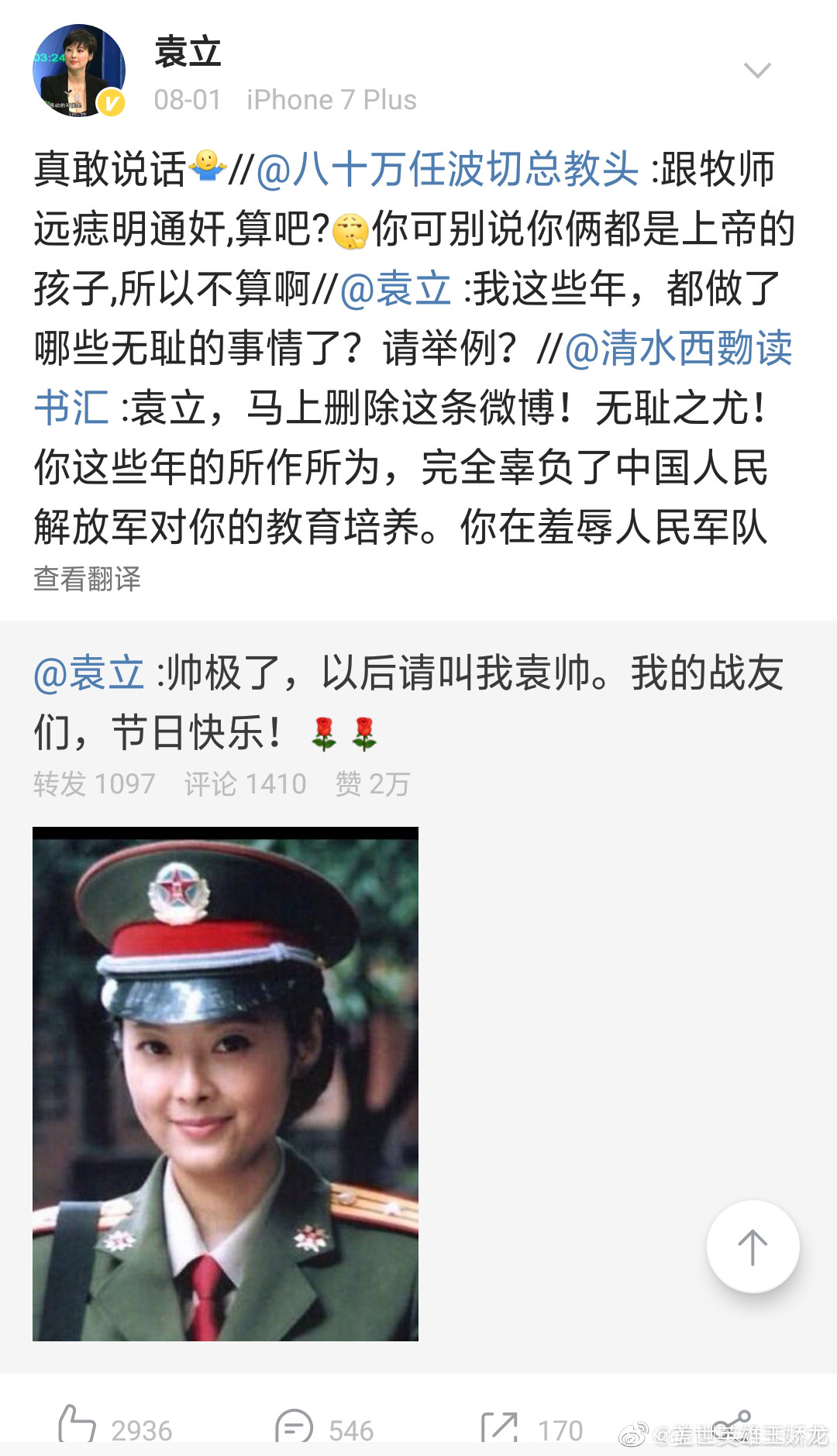 按照袁立的文化水平和多年以來與網友撕逼的風格,她是不可能看不到關於遠志明的其他的評論的。