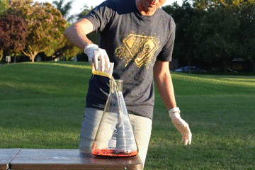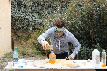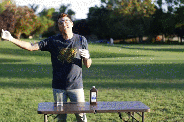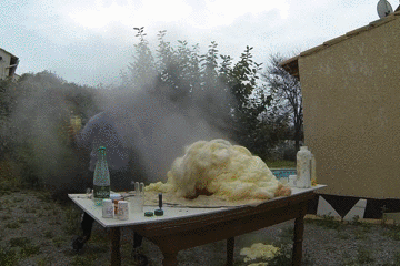 而有些小哥就是喜歡在自家後院搞事情。下面這位來自法國的小哥戴上護目鏡,在自家後院玩起了大象牙膏實驗,這一飛沖天的效果把他自己嚇了一大跳。