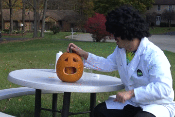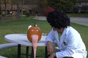 美國人用泡沫慶祝完美國國慶後,還能用它來慶祝萬聖節。這次把容器換成南瓜,一改前面快速噴湧而出的刺激感,換成緩慢流出的嘔吐南瓜版大象牙膏: