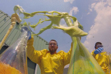 他決定要做個目前世界上最大的大象牙膏實驗,泡沫能佔滿一個水池的那種。前期準備工作的工程量很大,不僅要準備原料,還要在水池周圍鋪好袋子,以防泡沫過多不方便清理。