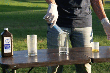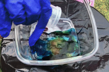 小孩子們在自家後院戴上手套做實驗,一切以安全為主。隨意往膨脹的泡沫上加點色素,玩得不亦樂乎。