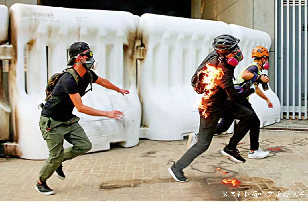 投擲汽油彈的暴徒玩火自焚,燒傷自己