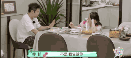 喬杉見狀趕緊把洗碗的活兒攬過來,“等會兒我收拾吧,你別收拾了,這個挺沉”,然後一邊唱“賢惠得很”一邊歡歡喜喜地把碗筷都給洗了。