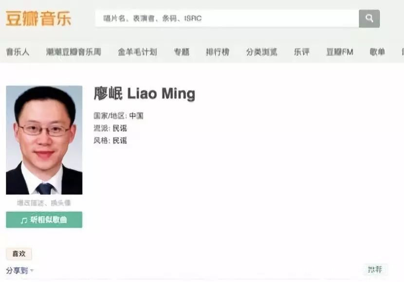 至今豆瓣音樂還留着廖岷作為音樂人的界面。
