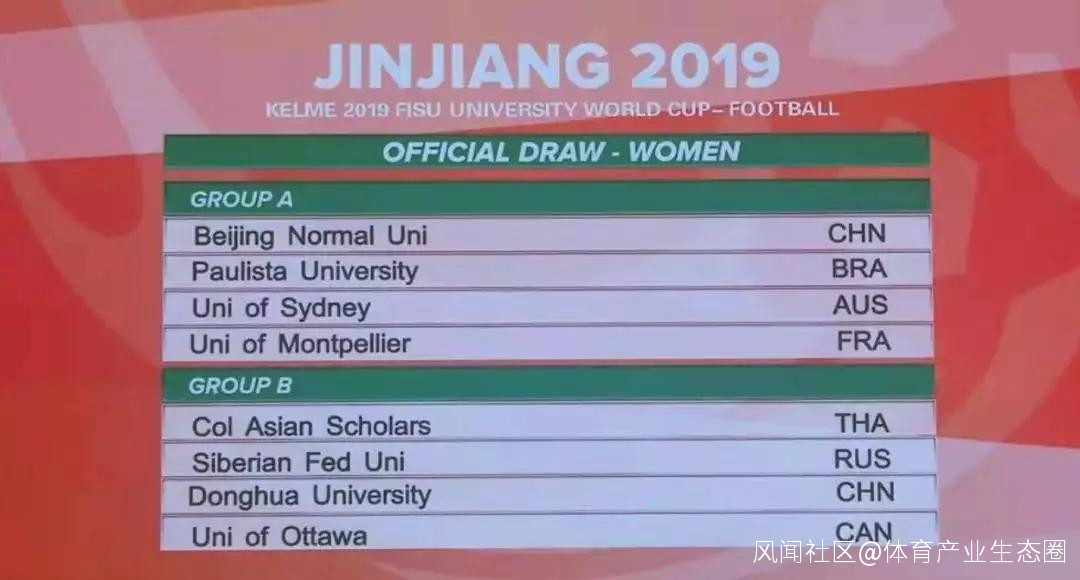 女子組方面,A組為北京師範大學;巴西保利斯塔大學、澳大利亞悉尼大學和法國蒙彼利埃大學,B組為東華大學、泰國亞洲學者學院、俄羅斯西伯利亞聯邦大學以及加拿大渥太華大學。