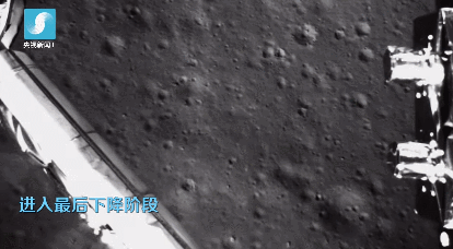 ▲“嫦娥四號”實施軟着陸瞬間的畫面