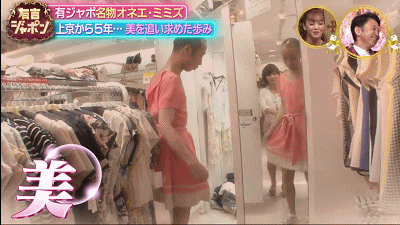 並且帶他去買裙子,一連換了好幾套,終於穿上心心念唸的女裝,在鏡子前就覺得自己很美。