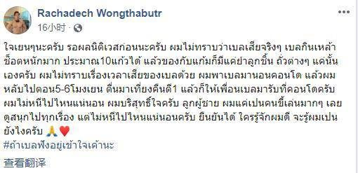 Rachadech Wongthabutr面對外界的指責在個人社交賬號上做出回應,表示自己也在等待調查結果,稱:“我很愛玩也享受其中,但我不是一個會逃避責任的人,我很確定朋友們都知道我是怎樣的人,我是清白的。”
