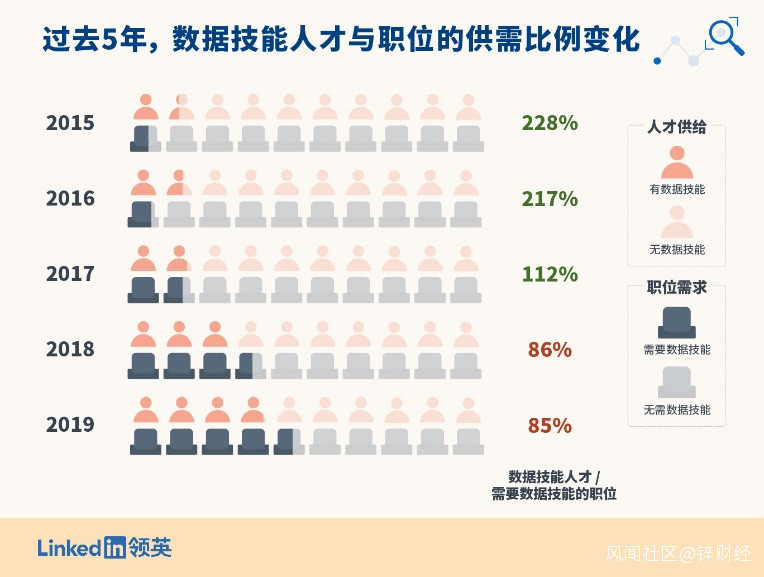 擁有數據技能的職場人5年增長3倍,而市場需求增長近7倍