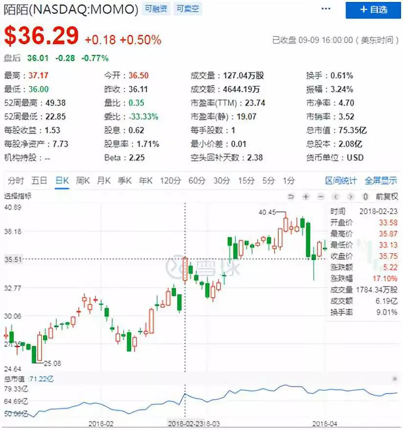唐巖説的不錯,且陌陌把這筆錢賺回來只用了不到24小時。在收購探探的消息被公開後,陌陌當天股價大漲17.1%,市值漲了超過10億美元。不過,這筆錢本質上是探探給陌陌賺回來的。
